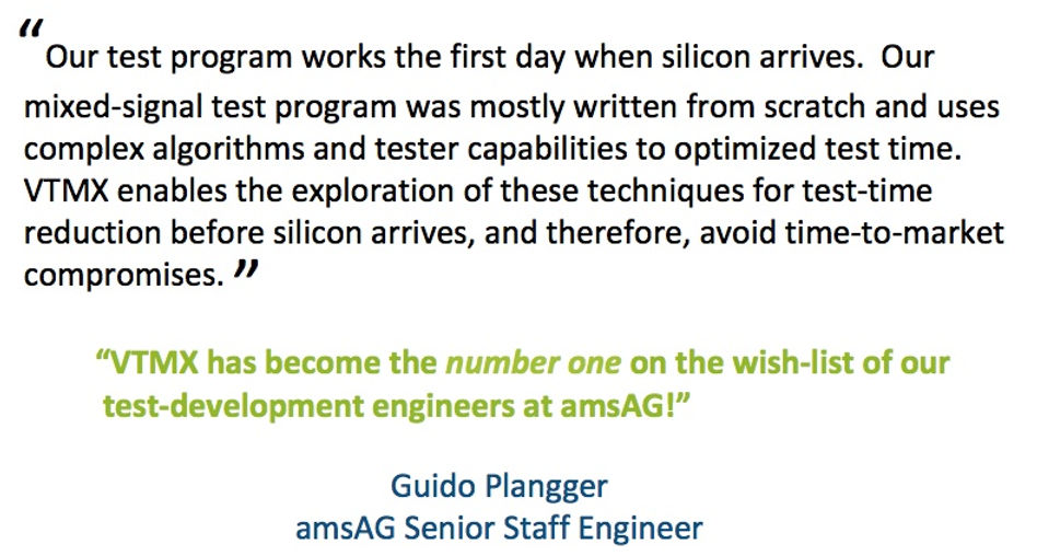 With VTMX, test engineers can bring up their test program before silicon arrives by accessing the EDA environment directly from the ATE environment that they are familiar with, without having to know a single line of EDA language such as Verilog.